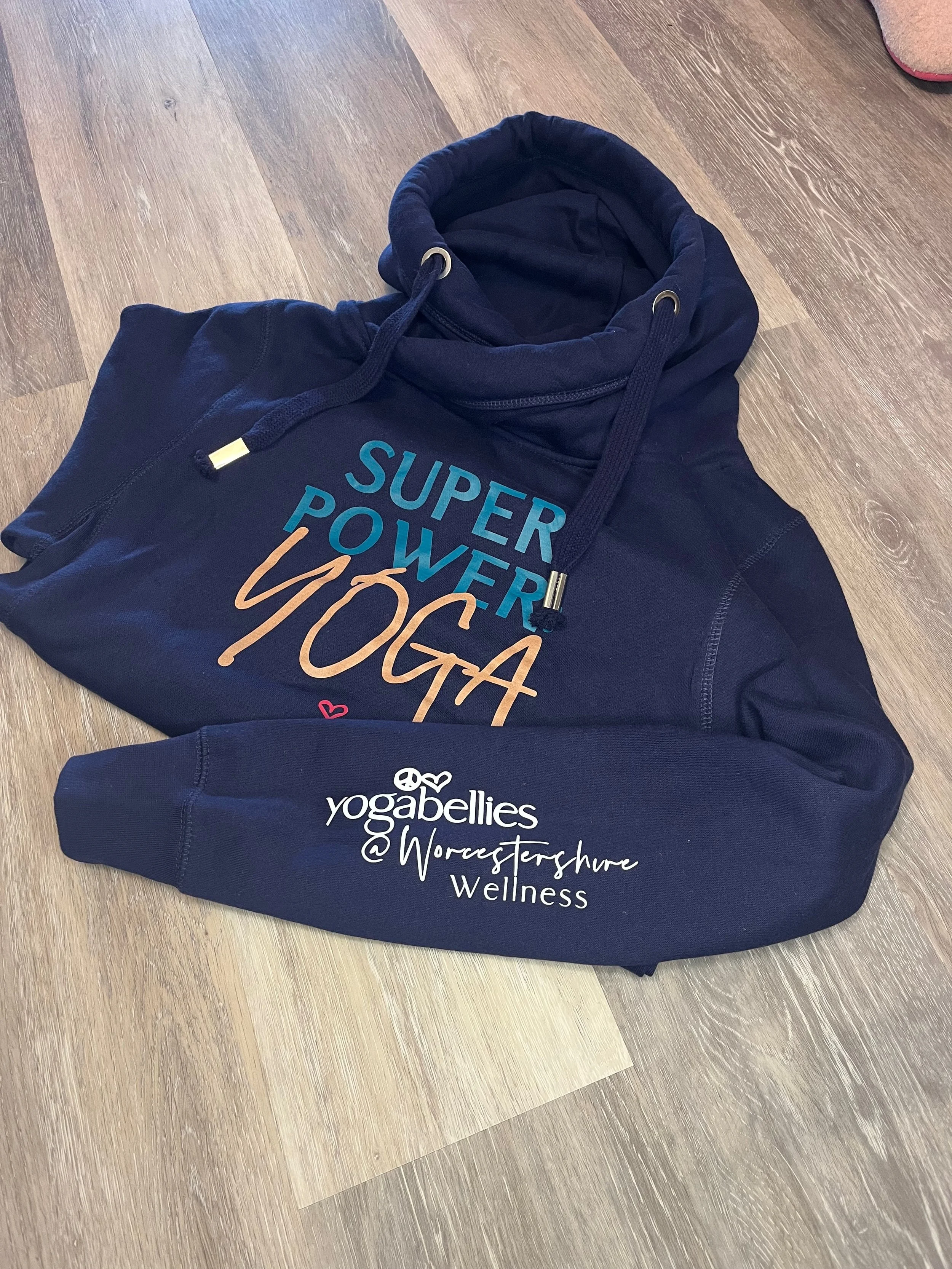 Navy Cross Neck Hoodie - Super Power: YOGA